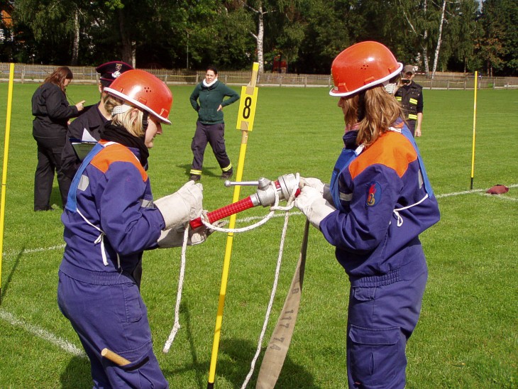 Bei der 'Leistungsspange' trägt 2006 eine zusammengewürfelte Gruppe mit Mitgliedern unserer Jugendfeuerwehr einen Löschangriff vor.